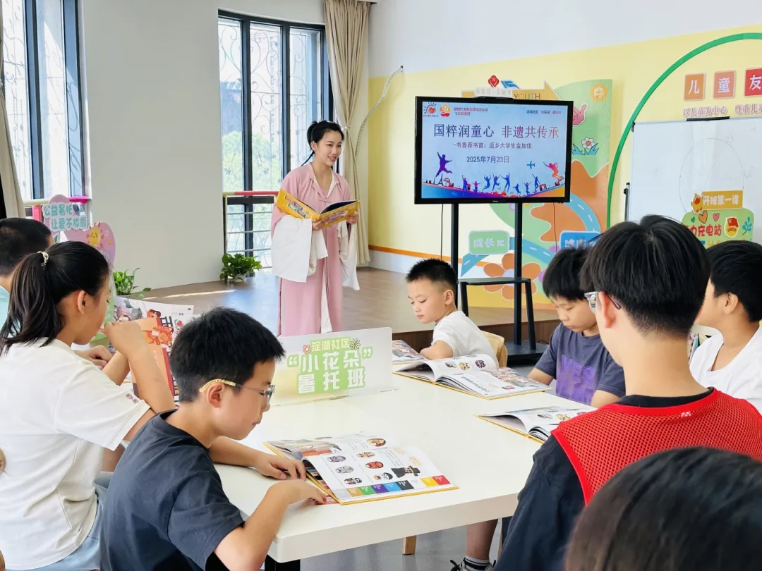 苏州市返乡大学生在暑托班带着小朋友读书。图片来源:江苏省精神文明建设办公室