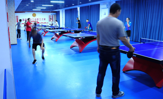 “乒出快乐 乓出精彩”八个大字烘托出乒乓球室的“文打”和“武打”两种不同的运动氛围:一组对打者抛球和挥拍击球两个动作一气呵成,抢攻、拉球、扣杀,双方激烈角逐,时不时收获“好球”的称赞;另外一组对打者在发球、捡球间自由切换,不时发出爽朗的笑声。“我们经常过来挥几拍,打得好不好是次要的,主要是这里环境好、离家近,还能锻炼身体,为我们的生活提供了很多乐趣。”现场参加活动的群众说。