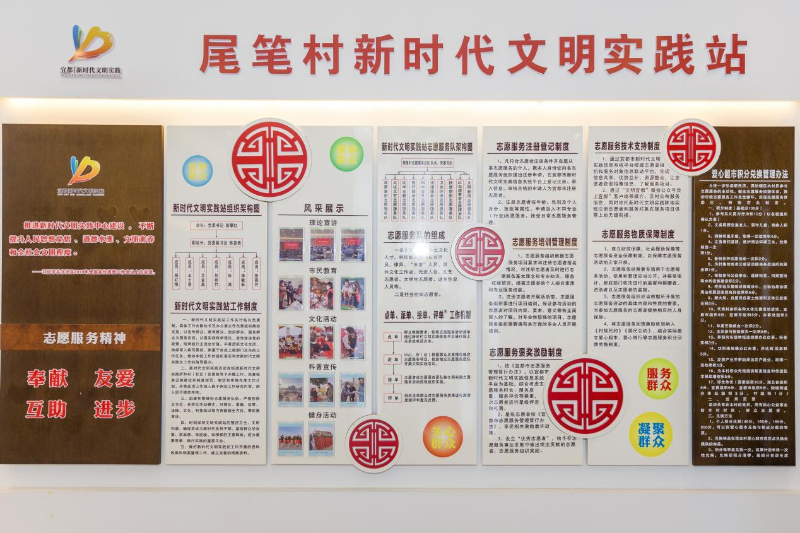 7月25日,湖北省宜都市陆城街道尾笔村新时代文明实践站的文明实践公示栏。新华网 钟奕 摄