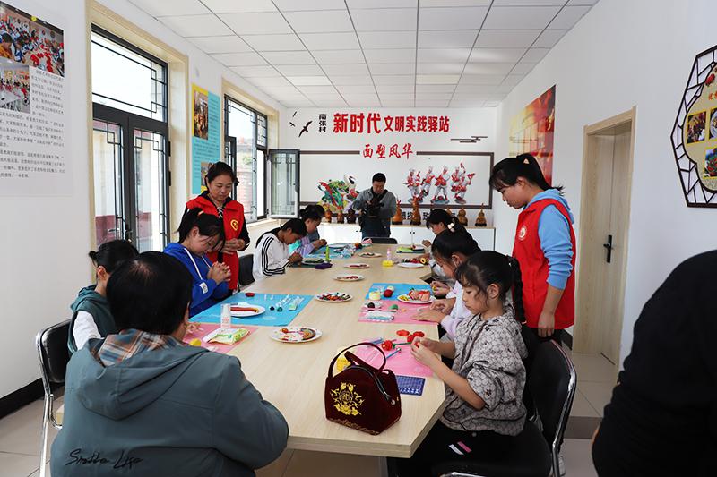 10月14日,在井陉县新时代文明实践驿站,孩子们正在体验面塑技艺,感受非遗文化魅力。(石家庄市文明办供图)
