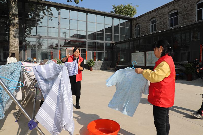 10月14日,井陉县上安镇白王庄村的新时代文明实践爱心洗衣驿站正在晾晒洗好的衣服。(石家庄市文明办供图)
