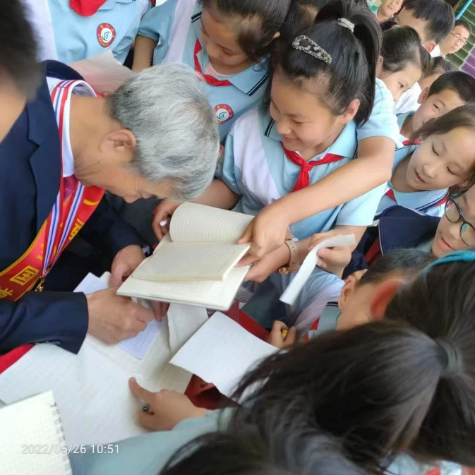 张旭峰为学生们签名(资料图)。张旭峰供图