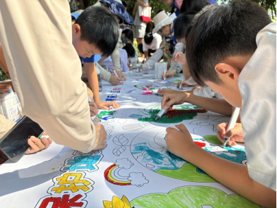文明提升离不开知识积累,“文明+学习”模式通过趣味场景设计,让文明知识学习变得生动高效。“文明知识打卡”成为核心载体,“十米长卷环保绘画”“垃圾分类飞行棋”“风筝画” 等环节,以寓教于乐的方式吸引市民参与;“小记者文明旅游说” 更让孩子们在采访实践中深化对文明的理解和传播,同时也增强了小小志愿者的自身胆量和口才的锻炼,让志愿服务于学习成长相得益彰。