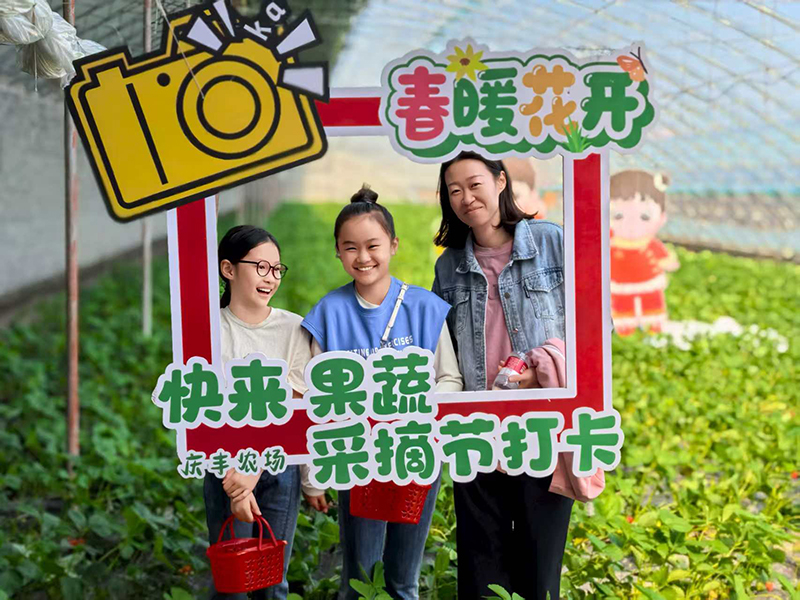 乡村振兴产业观光园果蔬采摘基地打卡留念。庆丰农场供图
