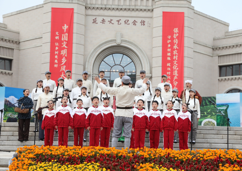 延安文艺纪念馆前合唱《黄河大合唱》。张殊凡 摄