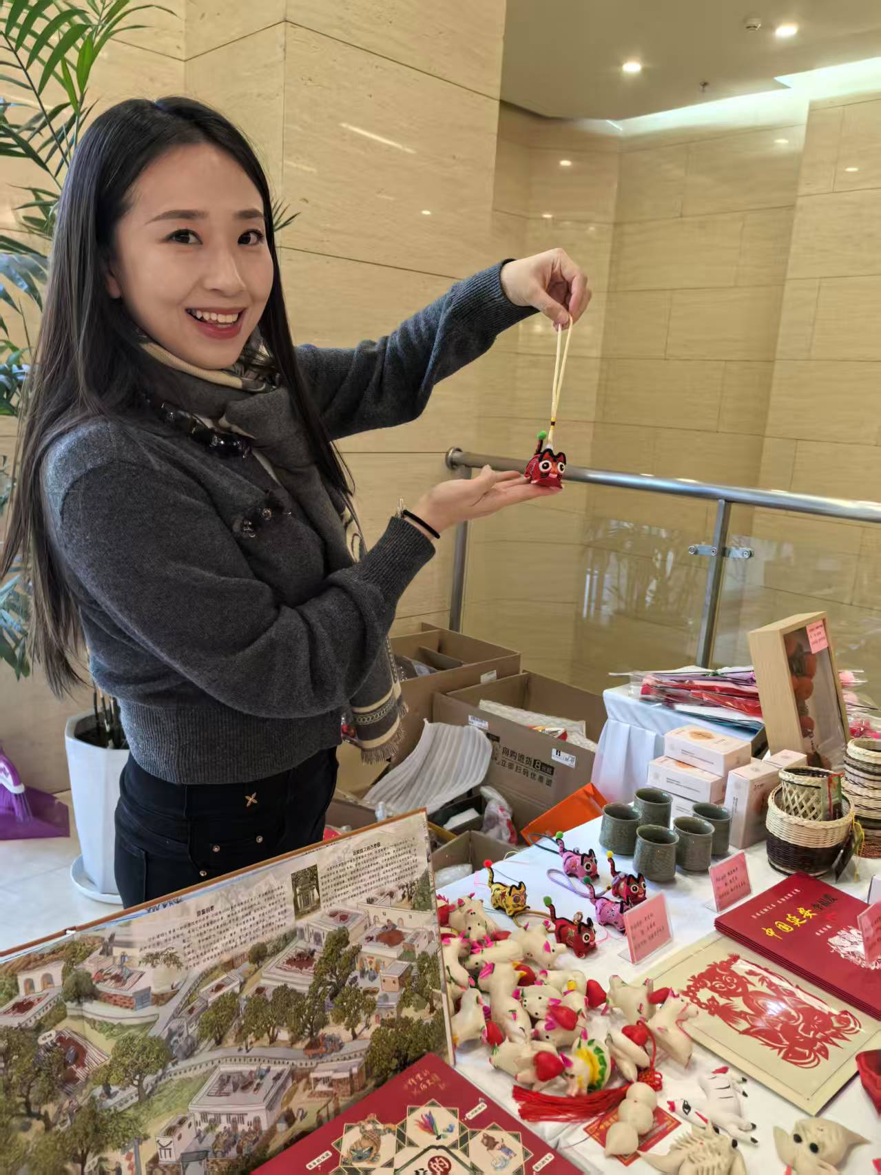 现场工作人员展示陕西特色挂饰。张殊凡 摄