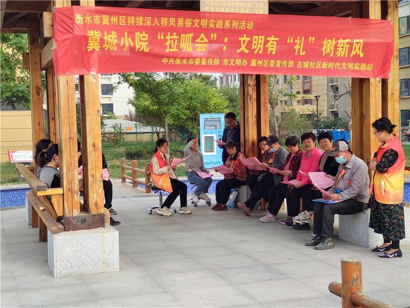 冀州区创新建立“小院拉呱会”制度,组织党员志愿者和社区干部主动走进社区广场、农家小院、企业车间,与群众“点对点、面对面“交流。